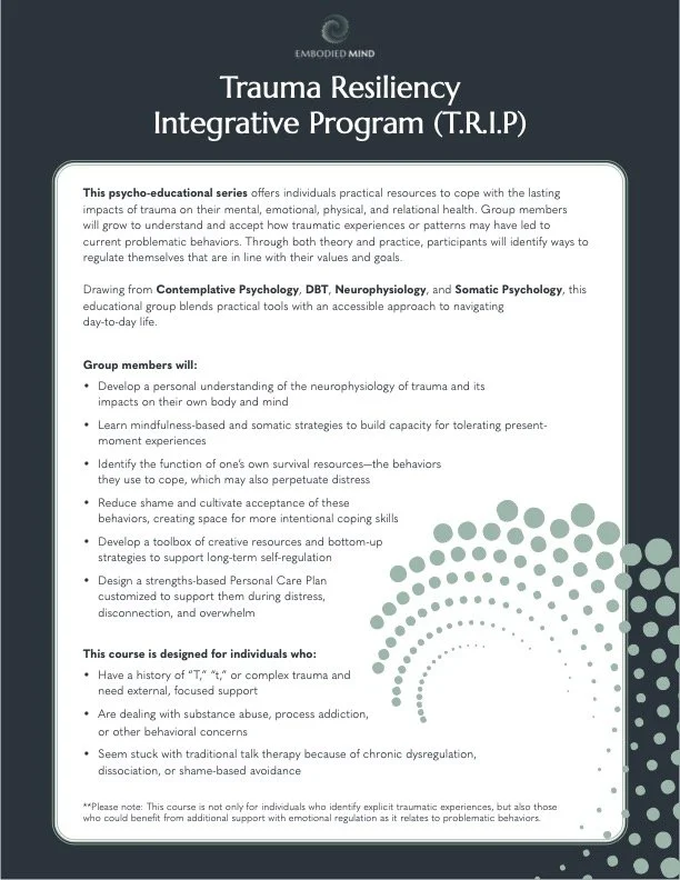 Enrolling now! Email admin@embodiedmindnyc.com to register or set up a complimentary consultation.